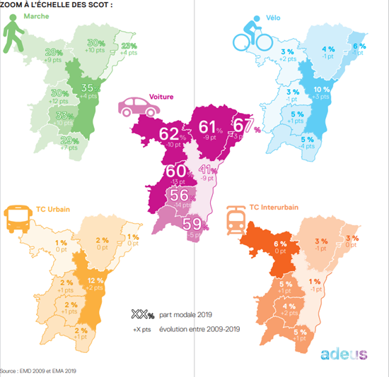 Source : Observatoire des mobilités, ADEUS, Les derniers chiffres sur la mobilité, mars 2025.